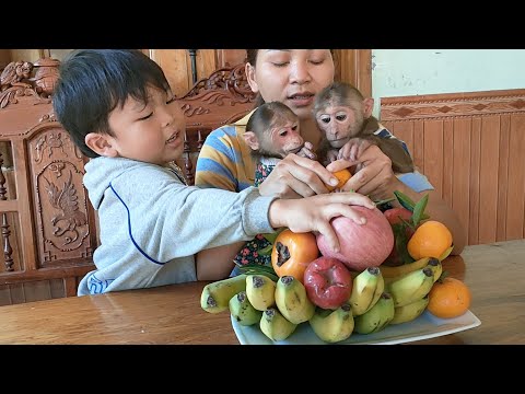 Mimi Kuku ate a lot of big fruit with Mom and brother